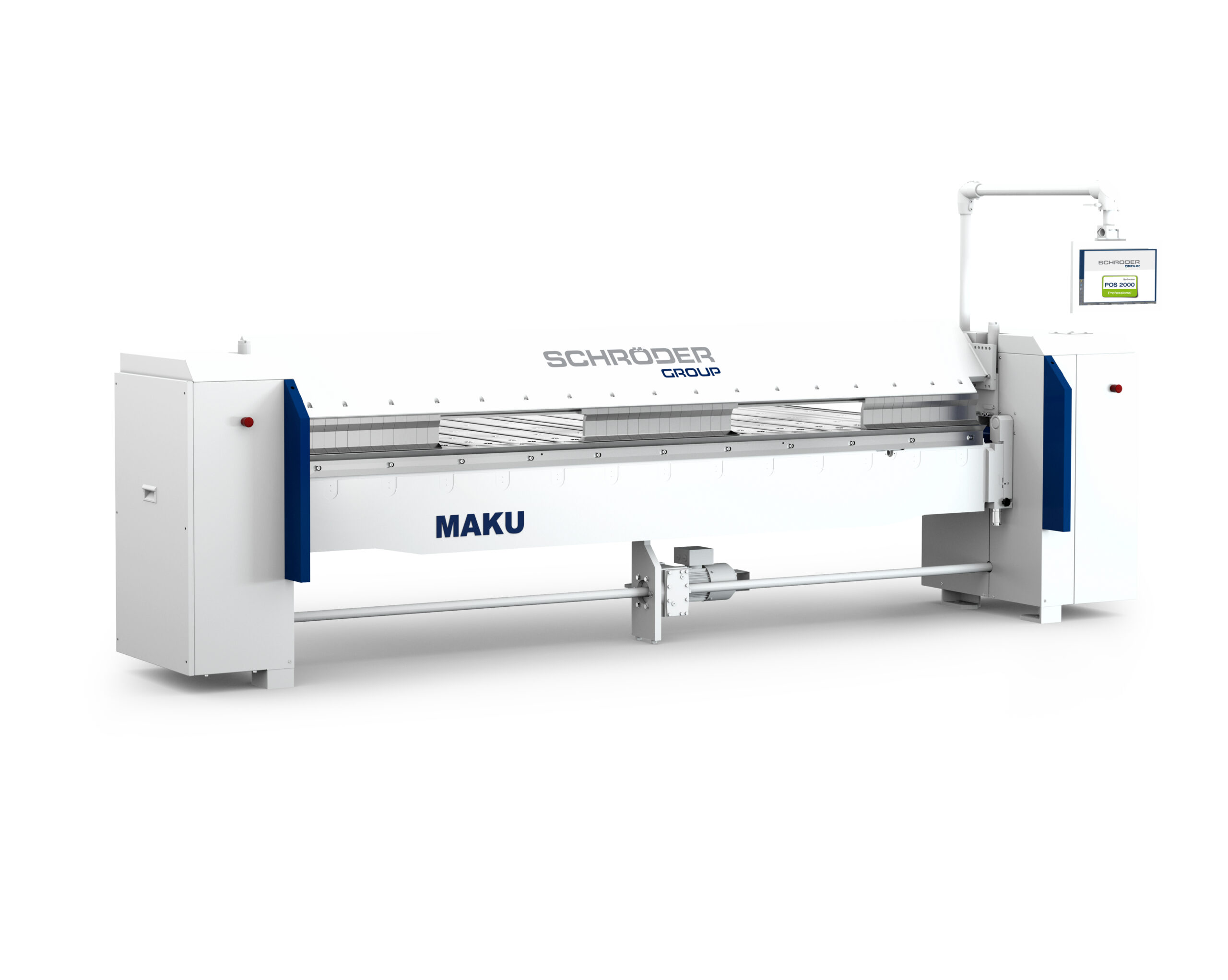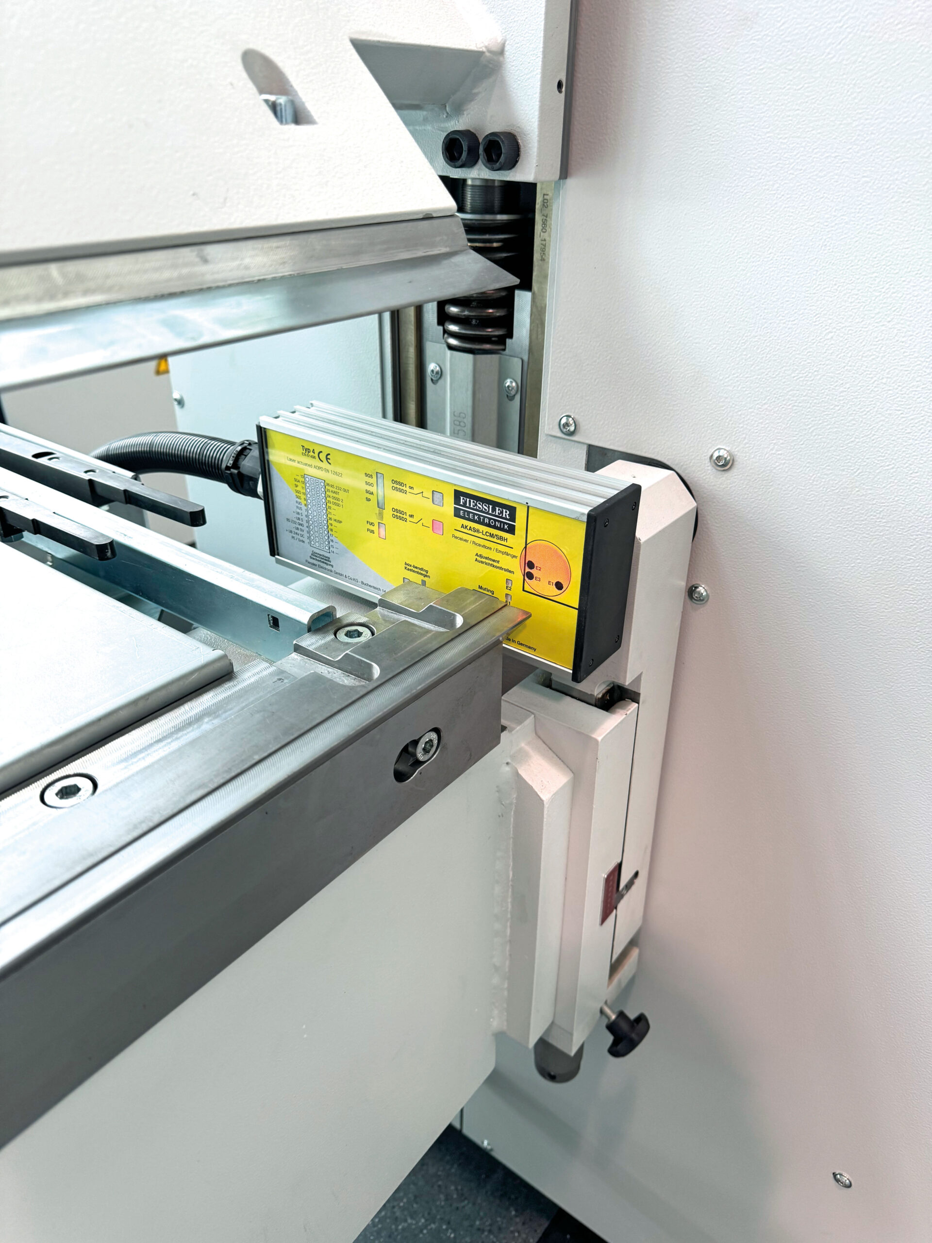 Wessobrunn-Forst, 24. Februar 2026 – Wenn es nach Hans Schröder Maschinenbau geht, wird der Einstieg ins motorische Abkanten künftig deutlich schneller und vielseitiger: Die motorische Schwenkbiegemaschine MAKU wurde mit einem neuen Sicherheitslasersystem direkt an der Biegelinie ausgestattet und klemmt das Blech vor dem Biegen deutlich schneller. Eine neue Oberwangenoption ermöglicht zudem den Einsatz von Geißfußwerkzeugen und damit die Fertigung von Kästen.